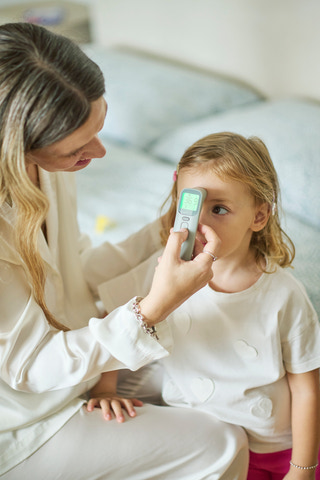 4 temperaturmätningsfunktioner: vuxnas panna, barns panna, öra, föremål (badvatten, flaskor, barnmat).