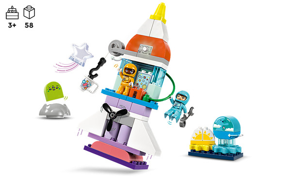- Ombyggbart leksaksrymdskepp – Ge näring åt en liten astronauts passion för yttre rymden med den mångsidiga leksaken LEGO® DUPLO® 3in1 Äventyr med rymdfärja för förskolebarn från 3 år.