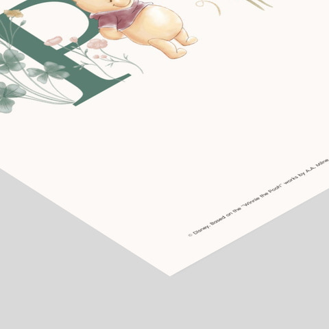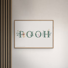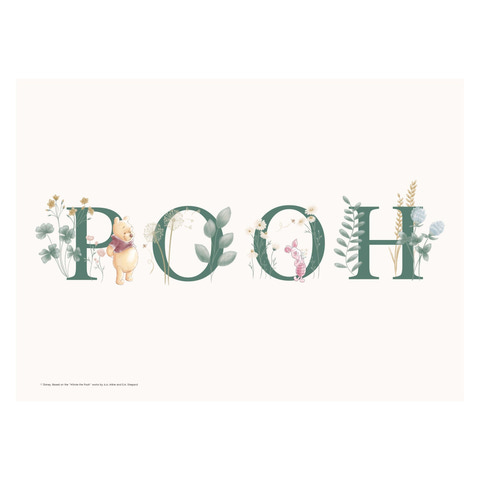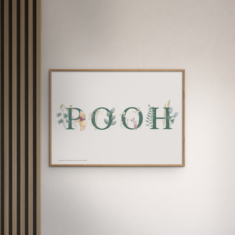 Ge barnrummet en mysig och äventyrlig touch med denna vackra affisch från Poster & Frame, som föreställer Nalle Puh och Nasse omgivna av vackra blommor och gröna blad. Affischen har ett mjukt och inbjudande utseende, med de två vännerna stående bredvid bokstäverna ”POOH” i gröna nyanser, dekorerade med botaniska element. Den är perfekt som doppresent, födelsedagspresent eller helt enkelt som en söt detalj i inredningen. Affischen passar perfekt i alla barnrum och kommer att sprida glädje och värme till både barn och vuxna som älskar de klassiska Disney-figurerna.