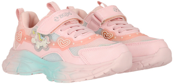 Agira Sneakers med lampor från ZIG ZAG är perfekta för barn som älskar färger och lek. Skorna har en vacker lavendelfärg och är dekorerade med en söt enhörning och hjärtan, vilket gör dem extra populära hos de små. Den lätta och ventilerande ovandelen i mesh garanterar komfort hela dagen, medan den flexibla sulan gör skorna bekväma att gå och springa i. Med praktisk kardborreknäppning och elastiska snören är de lätta att ta på och av, så att ditt barn snabbt kan gå ut och leka. De blinkande lamporna i sulan gör varje steg till en fest och ger extra synlighet på lekplatsen.