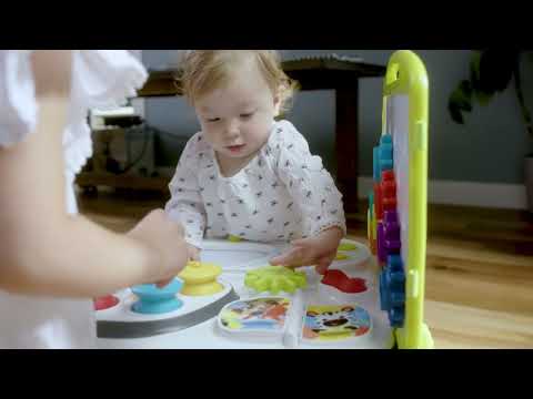 Detta aktivitetsvetenskapsbord kommer att hålla den lilla sysselsatt i timmar. Bordet innehåller avtagbara, roterande kugghjul och färgupptäckarkretsar samt blinkande ljus. Koppla ihop de olika kugghjulen och få det att lysa. Aktivitetsbordet spelar mer än 65 melodier och introducerar ditt barn för 3 olika språk, inklusive: engelska, spanska och franska. Volymen kan justeras till antingen höga eller låga inställningar och kan också stängas av helt. Ditt barn kommer att få en fantastisk musikalisk upplevelse med detta vetenskapsbord. Benen kan tas av, så själva borddelen kan användas för skoj och lek på golvet.