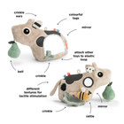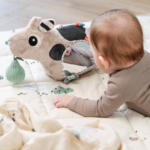 Aktivitetsgolvspejlet Dotti Sand från Done By Deer är det perfekta leksaken för små barn, som underhåller och stimulerar deras sinnen. Spegeln är formad som den söta kon Dotti och har en mjuk, plyschig yta som inbjuder till kramar och lek. Spegeln på sidan gör att barnet kan utforska sin egen spegelbild, vilket stärker självmedvetenheten och nyfikenheten. De färgglada detaljerna och olika texturerna på Dotti inbjuder till att röra, känna och utforska, och de små banden och knutarna är perfekta för små fingrar som vill greppa och dra. Golvspegeln kan användas för både mag- och ryggträning och står stabilt på golvet så att ditt barn kan leka säkert. Dotti är designad med fokus på både säkerhet och utveckling, och det mjuka materialet gör den bekväm för barnet att ligga på. Med Dotti Sand Activity Floor Mirror får du en leksak som kombinerar lek, lärande och säkerhet på en och samma gång. 28 x 11,5 x H 23 cm.