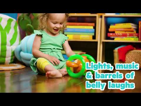 Starta apan med ett lätt tryck ovanpå huvudet! Låt den springa runt i hemmet och låt ditt barn fånga den. Här får du en leksak som får ditt barn att röra sig och ha massa skoj. De gröna hjulen lyser och spelar musik när apan rör sig.