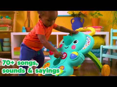 Sitt och lek eller stå och gå med Stroll 'n Roll-bollspelare från Bright Starts! Denna 2-i-1 gå-leksak växer med barnets utveckling och ger din familj många års glädje. När den används som golvleksak är den full av aktiviteter, för att fånga barnets uppmärksamhet. Gör dig redo till att ha det roligt med den interaktiva elefantsnabeln! Barnet får träna finmotoriken genom att lägga bollarna i elefantens snabel, som aktiverar ljud och ljus. De store pianotangenter spelar glada ljud och pianointroduktion. Den flerfärjade bollen ger en rolig överraskning. Dans med till över 70 sånger och ljud på tre språk. När barnet växer, kan denna aktivitetsleksak också användas som kärra! Öva på att gå med mer pepp i varje steg!
