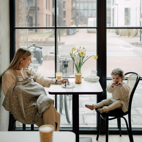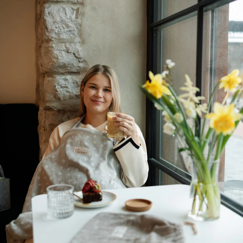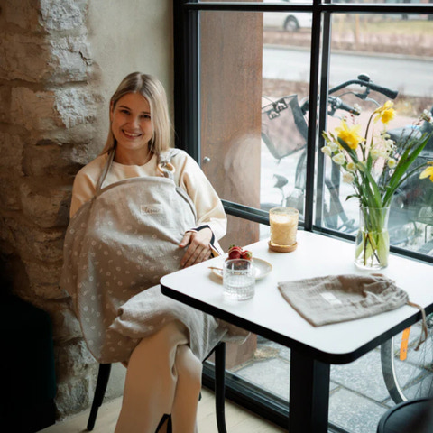 TISU-amningsskynken ger mammor bättre möjligheter att amma var som helst när de är på språng – i affärer, på kaféer, egentligen var som helst. TISU-amningsskynken hjälper dig att skapa en bekväm och privat atmosfär under amningen, både för dig och ditt barn. Dra bara amningsskynket över huvudet så är du redo att börja amma! TISU-amningsskynken är en premiumprodukt tillverkad av lätt tvättbart 100 % muslinbomullstyg och utformad för att vara lätt och andas. Den stora halsringningen gör att du kan ha direkt ögonkontakt med ditt älskade barn, så att hen alltid kan se dig le! Förvara ditt TISU-amningsskynke i den matchande påsen i en skötväska eller fäst det på barnvagnen så att du kan ta med det när du är på språng!