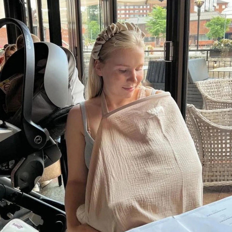 TISU-amningsskynken ger mammor bättre möjligheter att amma var som helst när de är på språng – i affärer, på kaféer, egentligen var som helst. TISU-amningsskynken hjälper dig att skapa en bekväm och privat atmosfär under amningen, både för dig och ditt barn. Dra bara amningsskynket över huvudet så är du redo att börja amma! TISU-amningsskynken är en premiumprodukt tillverkad av lätt tvättbart 100 % muslinbomullstyg och utformad för att vara lätt och andas. Den stora halsringningen gör att du kan ha direkt ögonkontakt med ditt älskade barn, så att hen alltid kan se dig le! Förvara ditt TISU-amningsskynke i den matchande påsen i en skötväska eller fäst det på barnvagnen så att du kan ta med det när du är på språng!