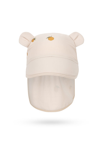 Solhatt med extra långt tyg baktill som skyddar barnets nacke från solen. Designad med små björnöron på toppen.