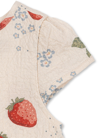 Mjuk seersuckertopp med korta ärmar i klassisk A-formad silhuett med veckdetaljer. Tillverkad av andningsbar ekologisk bomull som känns lätt och bekväm att bära.