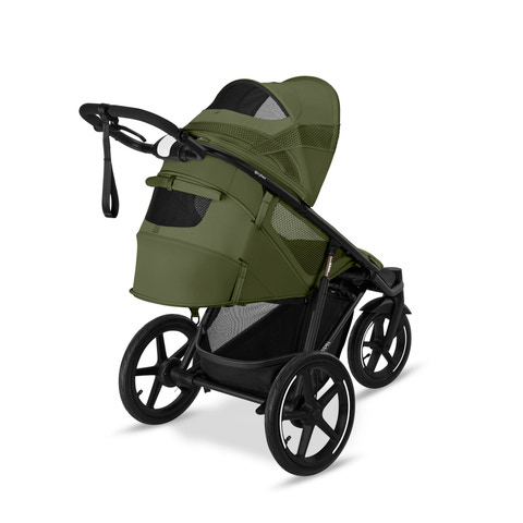 AVI Spin kan fällas till en ergonomisk liggande position, så att nyfödda barn kan ligga bekvämt. En Cybex-bilbarnstol eller babylift kan fästas med hjälp av adaptrar. Cot S Avi Spin kan köpas separat för extra komfort under de första 6 månaderna.