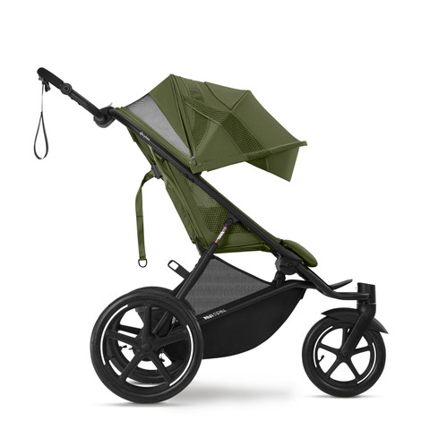 För en säker och smidig upplevelse när du springer, joggar eller går snabbt, se till att framhjulet alltid är låst. Detta förhindrar att hjulet snurrar och bibehåller stabiliteten under din aktivitet. Handbromsen är utformad för att ge dig extra kontroll och hjälper dig att reglera hastigheten när du använder barnvagnen på ett mer aktivt sätt.