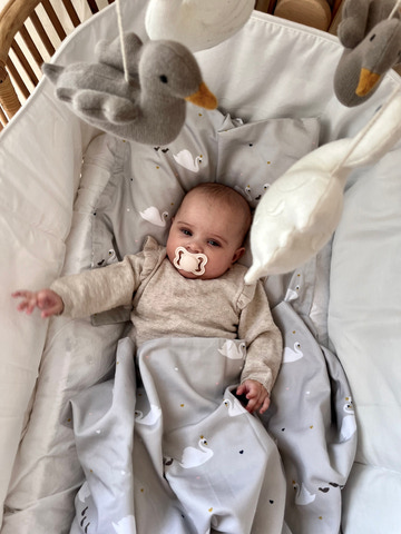 Söta drömmar kommer när du stoppar om din lilla i detta vackra sängklädesset. Det mjuka påslakanet stängs med klassiska dragband för enkel och elegant stängning, medan örngottet har ett kuvertstängning.