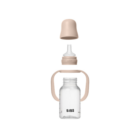 BIBS Sippy Bottle är nästa steg i ditt barns resa mot självständigt ätande. Den är noggrant utformad med en mjuk pip som är idealisk för vatten och har praktiska handtag som är lätta för små händer att greppa.