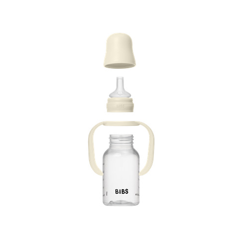 BIBS Sippy Bottle är nästa steg i ditt barns resa mot självständigt ätande. Den är noggrant utformad med en mjuk pip som är idealisk för vatten och har praktiska handtag som är lätta för små händer att greppa.