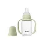 BIBS Sippy Bottle är nästa steg i ditt barns resa mot självständigt ätande. Den är noggrant utformad med en mjuk pip som är idealisk för vatten och har praktiska handtag som är lätta för små händer att greppa.