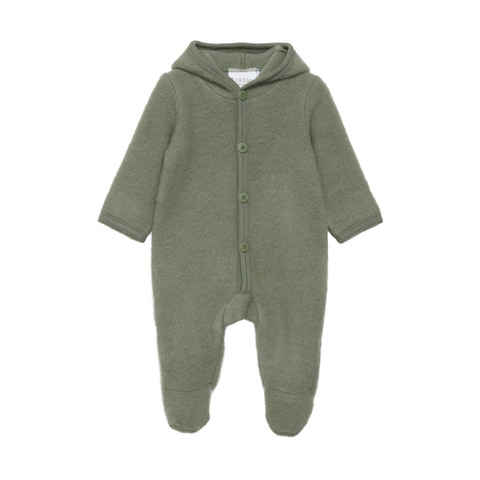 Mysig babyoverall tillverkad i mysig ull för en varm och gosig känsla! Knäppning fram för att enkel av-och påklädning. Overallen är även utrustad med en mysig luva. Kommer i strl. 56-74.