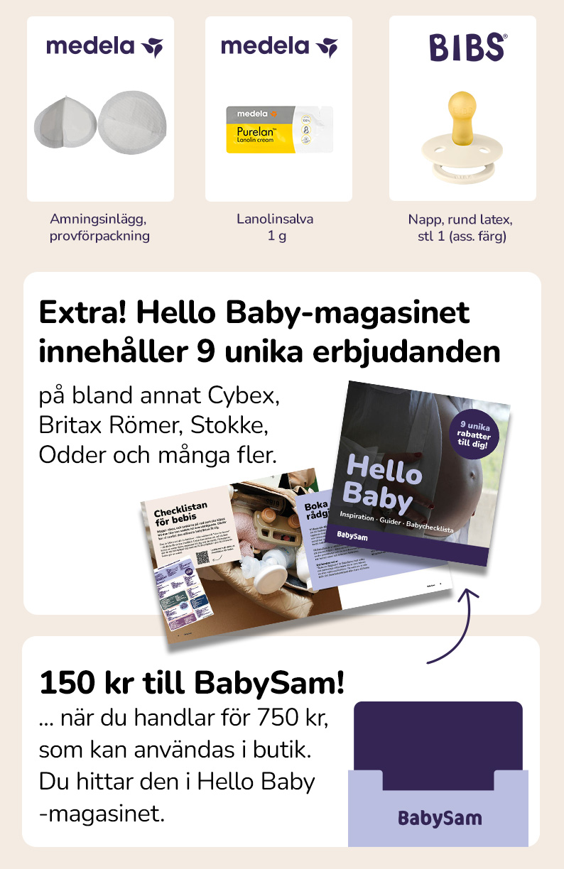 Du får även ett mini-magasin fyllt med unika rabatter som kan användas både under graviditeten och efter att din lilla har kommit till världen. Dessutom har vi samlat inspirerande guider som hjälper dig att känna dig mer förberedd – oavsett om det gäller att välja rätt barnvagn, förstå bilbarnstolens funktioner eller skapa lugn kring sömn och amning.