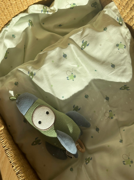 Söta drömmar kommer när du stoppar om din lilla i detta vackra sängklädesset. Det mjuka påslakanet stängs med klassiska dragband för enkel och elegant stängning, medan örngottet har ett kuvertstängning.