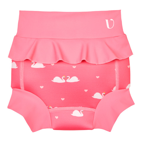 Badblöj neopren - Swan - ROSY från Vanilla COPENHAGEN är en charmig och praktisk badblöja för de minsta. Den är tillverkad i mjuk och flexibel neopren som ger en bekväm och säker passform, samtidigt som den minimerar risken för läckage under badstunden. Den söta rosa färgen med svanmotiv och hjärtan gör den extra rolig för barnet. Med bred resår i midjan och runt benen sitter blöjan tryggt på plats, även under lek och rörelse i vattnet. Perfekt för babysim, poolbesök eller stranddagar – och enkel att ta av och på. Badblöjan är ett miljövänligt alternativ till engångsbadblöjor och kan användas om och om igen.