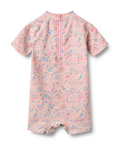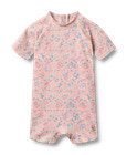Praktisk unisex baddräkt med tryck och korta ärmar och ben för bebisar.Wheats badkläder är perfekta för en dag på stranden eller poolen. Alla våra badkläder är till övervägande del gjorda i återvunnen polyester och är bekväma att bära och röra sig i.