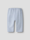 Baja-byxorna i Zen-blått från Lil' Atelier är det perfekta valet för vardagsbruk, eftersom de kombinerar komfort och stil. Byxorna är tillverkade av mjuk bomull som känns skön mot huden och ger småttingarna stor rörelsefrihet. Den elastiska midjan med dragsko gör att byxorna sitter bra utan att vara för åtsittande, och det enkla randiga mönstret i blå nyanser gör dem lätta att matcha med andra plagg. En liten ficka med dekorativ knapp ger en söt och funktionell touch. Perfekt för både lek och avkoppling.