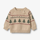 Härlig stickad tröja med julmotiv i mjuk ekologisk bomull för spädbarn. Wheats stickade plagg är ett måste när vinterkylan närmar sig. Denna stickade tröja utstrålar julstämning med sitt fina tryck med julmotiv. Perfekt till både byxor och klänningar, oavsett om det är till julfesten eller mysiga helger hemma. Bär den som ett extra lager under en jacka för att hålla ditt barn varmt hela säsongen.