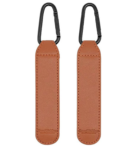 HELP ME HOOKS från KongWalther är ett set barnvagnskrokar som fungerar som din hjälpande hand när antingen shoppingkassarna blivit för tunga eller skötväskan behöver någonstans att hänga. De är lätta att montera och passar alla typer av styre på antingen en barnvagn eller sittvagn. De fästs i styret med ett extremt starkt kardborreband och sedan kan du använda de två karbinhakarna för att hänga upp dina tunga väskor, eller vad du nu behöver. Setet består av 2 krokar och är tillverkat av 100% veganskt läder.