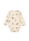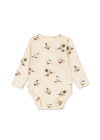 Mjuk långärmad bodysuit i ekologisk bomull med elastan för ökad hållbarhet och lite stretch. Med praktiska tryckknappar i grenen för enkel påklädning.
