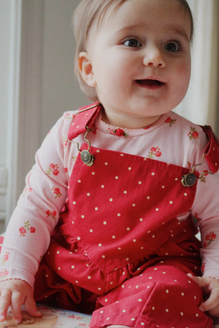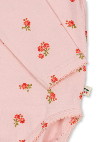 Mjuk långärmad bodysuit i ekologisk bomull med elastan för ökad hållbarhet och lite stretch. Med praktiska tryckknappar i grenen för enkel påklädning.