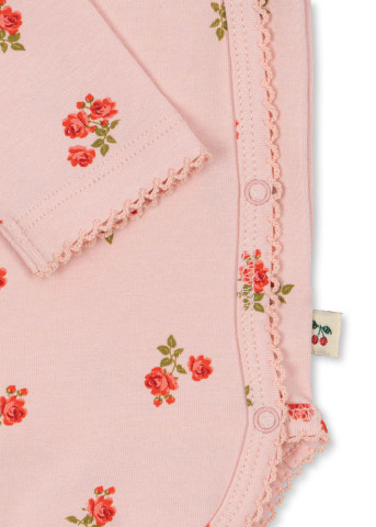 Mjuk långärmad bodysuit med omlottdesign för nyfödda som är lätt att ta på. Med tryckknappar längs sidorna och i grenen, vilket gör det enkelt att klä på ditt barn.