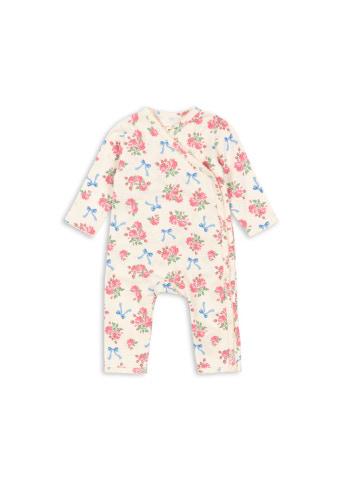 Mjuk jumpsuit för nyfödda i en lätt bomullsblandning med lite stretch. Designad med ett omlottstängning med tryckknappar längs kroppen och benen, vilket gör det enkelt att klä på ditt barn.