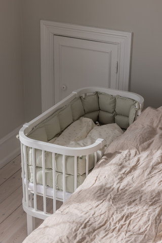Sebras sängkorg är designad utifrån den ikoniska Sebra-sängen. Det böjda träet och de smala spjälorna skapar en vacker säng som passar utmärkt i alla sovrum. Du kan välja om du vill att ena sidan av spjälsängen ska vara nedsänkt som en säng vid sängen eller om båda sidorna ska vara upphöjda som en vanlig spjälsäng. Detta ger dig fler alternativ när du lär känna ditt barn och er rytm.