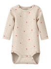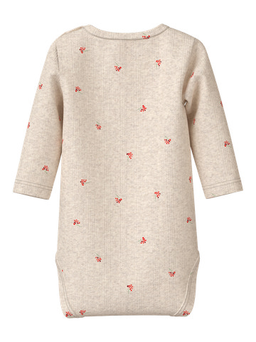 Berries Långärmad Body från NAME IT är ett perfekt basplagg för de minsta. Den är tillverkad i en mjuk och stretchig blandning av 95% bomull och 5% elastan, vilket ger en skön passform och rörelsefrihet. Den diskreta peyote melange-färgen och det söta bärmönstret gör bodyn både lekfull och stilren. Praktiska tryckknappar i grenen underlättar blöjbyten och påklädning, och den långärmade modellen passar lika bra till vardags som till fest. Ett hållbart och bekvämt val för barnets garderob!