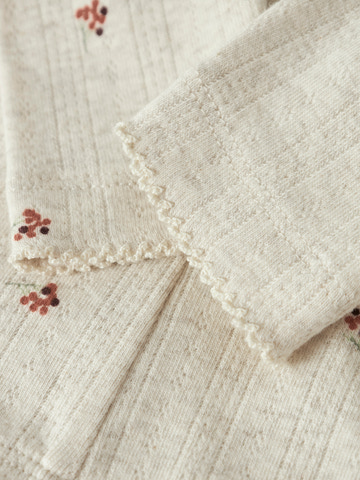 Berries Leggings från NAME IT är ett par charmiga och bekväma leggings i färgen Peyote Melange. De är tillverkade av 95% bomull och 5% elastan, vilket ger en mjuk och följsam känsla mot huden. Det söta bärmönstret och den diskreta spetskanten nedtill gör dem till ett lekfullt tillskott i garderoben. Tack vare den elastiska midjan sitter leggingsen skönt hela dagen, oavsett om det är lek eller vila på schemat. Passar utmärkt att kombinera med både tunikor och tröjor för en komplett outfit.