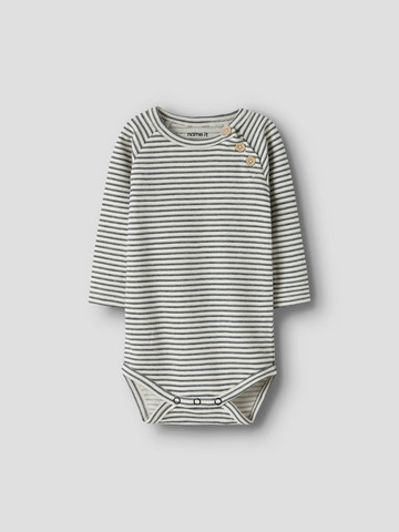 Bripo Långärmad Body från NAME IT är ett perfekt basplagg för de minsta. Den är tillverkad i 100% ekologisk bomull som känns mjuk och behaglig mot barnets hud, samtidigt som den är snäll mot miljön. Den klassiska randiga designen i marinblått och vitt gör bodyn både tidlös och lättmatchad. Med knappar på axeln blir på- och avklädning enkel, och tryckknappar i grenen underlättar vid blöjbyten. Den långärmade modellen passar lika bra till vardags som till fest och håller ditt barn varmt och bekvämt hela dagen.