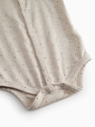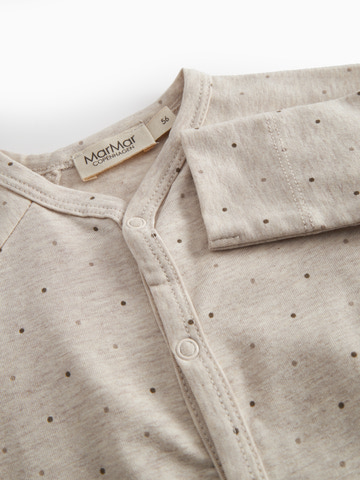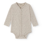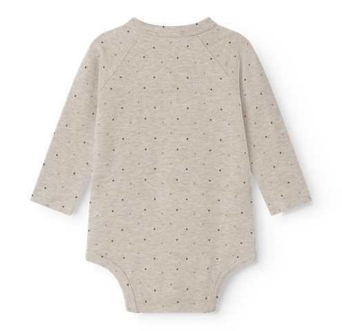 Bruno Long Sleeve Bodysuit från MarMar Copenhagen är en härlig basbody för de allra minsta. Den är tillverkad i ett mjukt och stretchigt tyg som garanterar optimal komfort för ditt barn hela dagen lång. Bodyn har långa ärmar, vilket gör den perfekt både som vardagsklädsel och som underställ på kyligare dagar. Den praktiska tryckknappsstängningen längs hela framsidan och mellan benen gör det enkelt att klä på ditt barn och byta blöjor. Det diskreta prickmönstret och den neutrala beige melangefärgen passar alla garderober och kan enkelt kombineras med andra stilar.