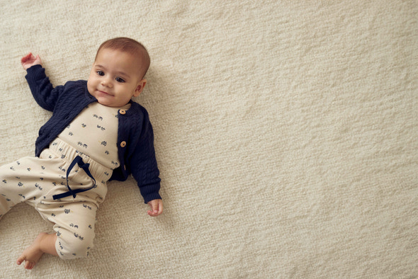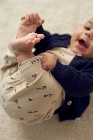 Dessa charmiga byxor är dekorerade med ett fint, genomgående tryck av små bilar – perfekta för små barn som gillar fart. Byxorna har ett bekvämt resår i midjan och ett dekorativt knytband som ger en extra söt touch. Fram finns en enkel, praktisk ficka.