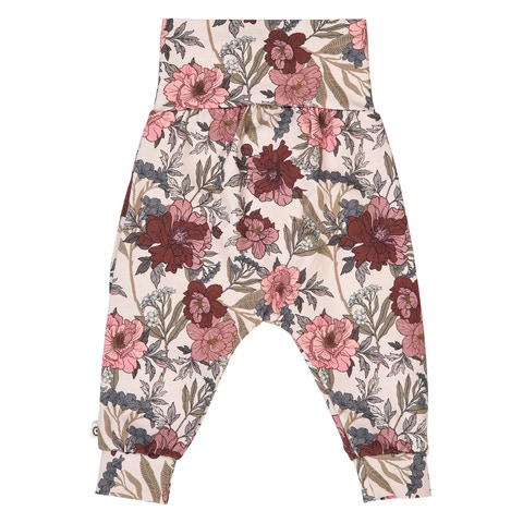 Dessa vackra byxor är designade med veck fram, vilket ger dem en feminin och raffinerad look. Det genomgående trycket med stora blommor ger ett konstnärligt och livligt utseende som gör byxorna till något alldeles extra.