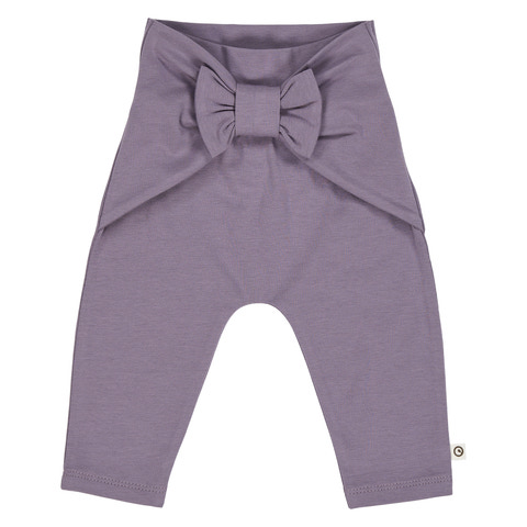 Dessa söta byxor är designade för komfort och sötma i ett. De har en fin liten rosett fram i midjan som ger ett feminint och charmigt uttryck. Byxorna är tillverkade i en mjuk och stretchig singeljersey som känns skön mot huden och ger massor av rörelsefrihet – utan att sitta åt vid magen eller benen.