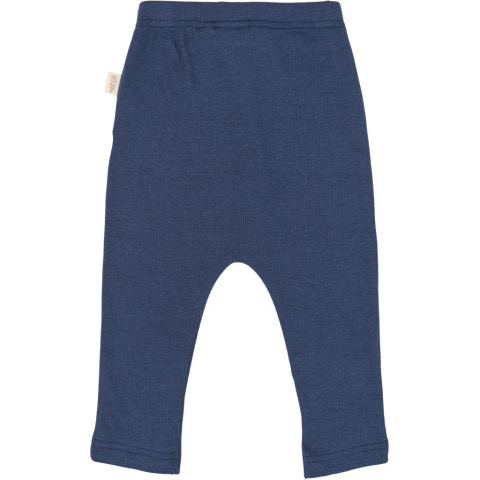 Petit Piao byxor med enfärgad ribbstruktur. Byxorna har en bra elastisk kant i midjan med vita knytband för justering i midjan. Byxorna är stretchiga och tillverkade av en skön blandning av bomull och modal. Tillverkade i Indien.
