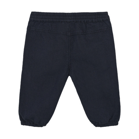 Byxor med ränder från Minymo i Odyssey Grey är ett utmärkt val både för vardagsbruk och festliga tillfällen. Byxorna har en klassisk och tidlös design med subtila, diskreta ränder som ger ett elegant utseende utan att vara för flashiga. Det mjuka och lätta tyget gör att ditt barn kan röra sig fritt och bekvämt hela dagen. Den elastiska midjan gör dem lätta att ta på och av, samtidigt som de sitter bra och följer barnets rörelser. Byxorna har praktiska fickor för förvaring av små skatter och elastiska anklar som håller byxorna på plats och ger en avslappnad look. De är perfekta för både lek och avkoppling och kan enkelt kombineras med en T-shirt eller skjorta för en komplett outfit.