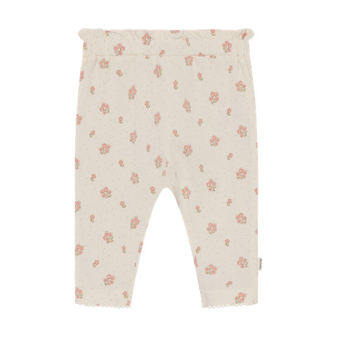 Tryckta byxor – Vanilla Ice från Minymo är ett utmärkt val för små barn som vill ha både komfort och en söt look i sin garderob. Byxorna är tillverkade av ett mjukt och stretchigt material som gör att ditt barn kan röra sig fritt och bekvämt hela dagen lång. Det fina trycket med små blommor i rosa nyanser på en ljus vaniljbakgrund skapar en charmig och feminin look som passar perfekt både till vardags och fest. Den elastiska midjan gör byxorna lätta att ta på och av, samtidigt som de sitter bra utan att vara för trånga. Byxorna kan enkelt kombineras med en body, T-shirt eller kofta för en komplett outfit.