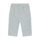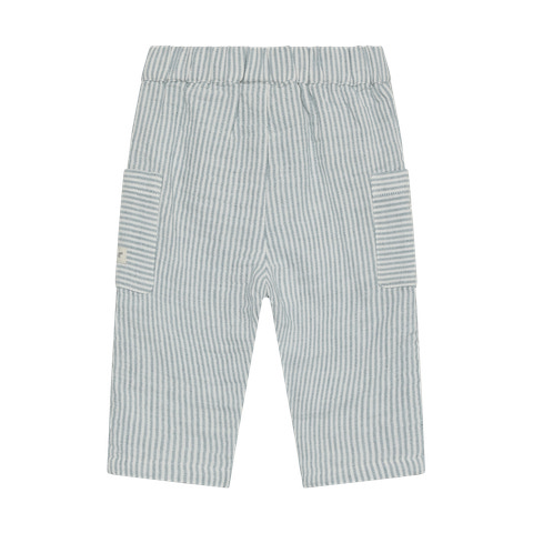 Muslinbyxor från En Fant är ett utmärkt val för små barn när komfort och rörelsefrihet är viktigast. Byxorna är tillverkade av mjuk och andningsbar muslin, som känns skön mot huden och är perfekt för både lek och avkoppling. Den elastiska midjan gör att byxorna sitter bra utan att vara för trånga och gör dem lätta att ta på och av – perfekt för barn som vill prova att klä sig själva. De två praktiska fickorna på sidorna ger plats för små skatter och leksaker som ditt barn kan ta med sig på sina äventyr. Det fina randiga mönstret i en vacker citadellblå färg passar både till vardags och fest, och byxorna kan enkelt kombineras med en T-shirt eller blus för en komplett look.