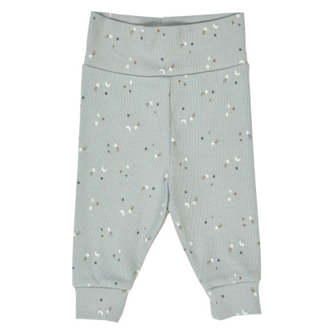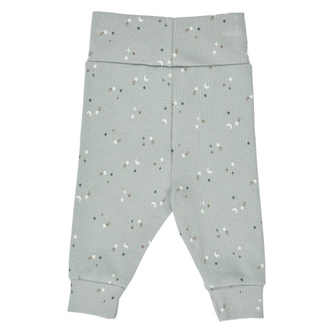 Skön, mjuka byxor i ribbstickning för de allra minsta. Vackert genomgående stjärntryck. Byxorna har en bred och elastisk kant upptill som kan vikas efter behov och stil.
