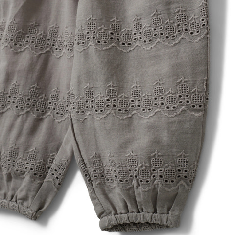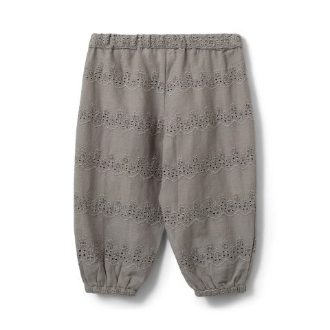 Carlina Byxor från Sofie Schnoor Kids är ett perfekt val för både vardag och fest. De är tillverkade i mjuk bomull som känns skön mot huden och har en vacker broderad spetsdetalj som ger byxorna ett unikt och stilfullt uttryck. Den elastiska midjan och bensluten gör dem enkla att ta på och av, samtidigt som de sitter bekvämt hela dagen. Den neutrala färgen "Stone Grey" gör dem lätta att matcha med andra plagg i garderoben. Ett par byxor som kombinerar komfort och stil på bästa sätt!
