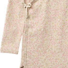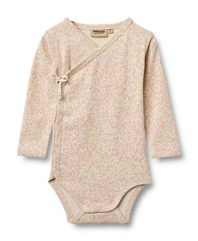 Chia Wrap Body från Wheat är en mjuk och bekväm body i ekologisk bomull, perfekt för ditt barns känsliga hud. Omlottmodellen med knytning i sidan gör påklädningen enkel och skonsam, särskilt för de allra minsta. Det fina blommönstret i korall och pastelltoner ger ett lekfullt och charmigt intryck. Långa ärmar håller barnet varmt och tryckknappar i grenen underlättar vid blöjbyten. En idealisk basplagg för både vardag och fest, där komfort och funktion går hand i hand.