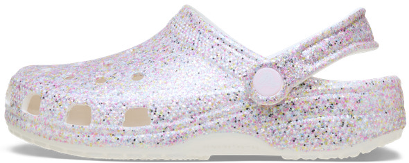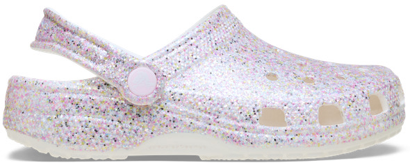 Classic Fantasy Glitter Clog från CROCS är den perfekta kombinationen av komfort och glittrande stil. Med sin lätta konstruktion och ikoniska Crocs-komfort är den idealisk för både inomhus- och utomhusbruk. De ventilerande hålen ger en sval känsla och gör att skon snabbt torkar om den blir blöt. Den justerbara hälremmen säkerställer att skon sitter stadigt på foten, vilket gör den perfekt för aktiva dagar. Dessutom är materialet vattenresistent och enkelt att rengöra, så du kan njuta av både lek och vardag utan bekymmer. Classic Fantasy Glitter Clog är ett glittrande tillskott till garderoben som passar både barn och vuxna.
