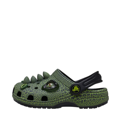 Känner du någon liten som älskar dinosaurier? Se till att de är redo att ryta! Den läskiga dinosauriedesignen på dessa tofflor hjälper din lilla att visa sin kärlek till dinosaurier, eller till och med låter dem låtsas att de är en läskig dinosaurie när de tar på sig I AM Scary Dino Clog. Designen inkluderar en dinosaurie-skalbehandling, detaljerade dinosaurieögon, näsborrar och taggiga dekorationer. Crocs erbjuder en rad olika Classic Clogs för barn och småbarn med inspirerande motiv som hjälper barnen att uttrycka sig och få nya vänner, vilket gör livet roligare för de små.