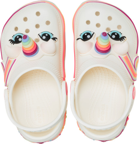 Classic Unicorn Lights från Crocs är ett par lekfulla och bekväma skor som passar perfekt för barn med fantasi och energi. Med ett färgglatt enhörningsmotiv och inbyggda ljuseffekter blir varje steg ett äventyr. Skorna är tillverkade i det klassiska Croslite™-materialet som gör dem både lätta och vattenresistenta, vilket är idealiskt för lek både inne och ute. Den justerbara hälremmen ger extra stabilitet och gör att skorna sitter säkert på foten. Classic Unicorn Lights är enkla att rengöra och tål både vatten och smuts, vilket gör dem till ett praktiskt val för aktiva barn. Med dessa Crocs får ditt barn både komfort och stil – och massor av glädje i varje steg!