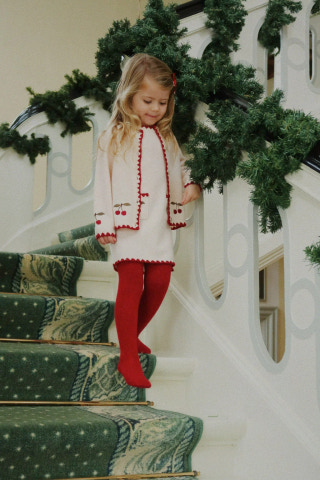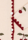 En exceptionellt mjuk stickad kofta med delikat körsbärsbroderi och kontrasterande tyg längs kanterna. Knäpps med pärlemorknappar framtill. Tillverkad av 100 % ull.