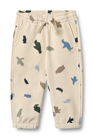 Löst sittande sweatpants med tryck i mjuk ekologisk bomull för din baby. Wheats mjuka sweatpants är unisex och bekväma för ditt barn att bära både som loungewear och till vardagsaktiviteter. De har ett bomullssnöre i midjan och sidofickor. Sweatpantsen har en lös och avslappnad passform som ger dem en cool, oversized look.